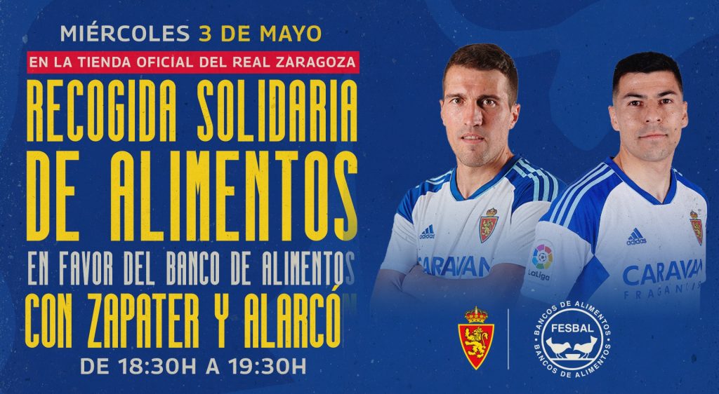 Promovido por el Real Zaragoza y la Federación de Peñas se puso el marcha el pasado miércoles 3 de mayo una iniciativa solidaria en favor del Banco de Alimentos, recogiendo alimentos no perecederos en la Tienda Oficial del Real Zaragoza. Dos jugadores del primer equipo colaboraron en la recogida de alimentos no perecederos y se pusieron a disposición de los aficionados para posar en fotografías y firmar postales a quienes quisieron participar en esta recogida. ¡¡Muchísimas gracias a donantes, organizadores y jugadores !!