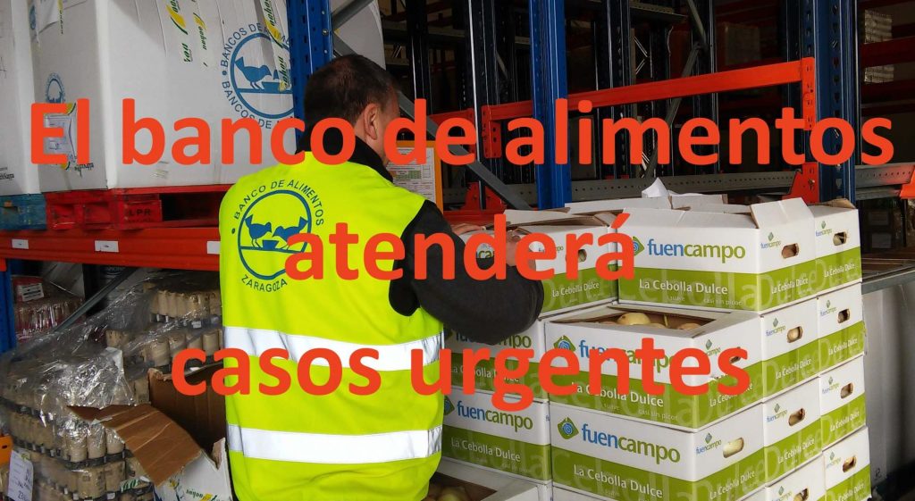 Nota de prensa. En sus almacenes sólo quedan 260.000 kilos cuando cada mes entregan unos 300.000. El Banco de Alimentos de Zaragoza continúa trabajando y se anticipa a las próximas necesidades de alimentos que puedan surgir. Desde el pasado día 14 de marzo, el Banco de Alimentos de Zaragoza está atendiendo las necesidades más urgentes que nos demandan las 158 entidades colaboradoras a las que estamos proporcionando alimentos, para que ellas las distribuyan entre las personas y familias necesitadas. Está siendo difícil, porque la mayor parte de nuestros voluntarios son personas que cuentan con mas de 60 años, y deben permanecer en casa por razones obvias. Pese a ello, un grupo de voluntarios están atendiendo las emergencias más urgentes, preparando lotes de alimentos para ponerlos a disposición de las entidades que, por urgencia, lo solicitan en estos días. Antes del estado de alarma se repartieron 308.000 kilos de comida entre todas las entidades del Fondo Europeo de Ayuda a los Desfavorecidos y ahora solo disponemos en nuestros almacenes de unos 260.000, cuando mensualmente se entregan unos 300.000. Debido a la crisis del coronavirus no se ha podido realizar la tradicional campaña de recogida en supermercados en marzo, y es posible que no se pueda realizar tampoco en el mes de abril y mayo. El presidente del Banco de Alimentos, José Ignacio Alfaro, quiere lanzar un mensaje de S.O.S a todas las empresas que pueden ayudar realizando sus donativos, tanto de alimentos como por medio de aportaciones económicas. Por otro lado recordamos que, en nuestra página web, os podéis inscribir las personas jóvenes que estéis dispuestos a colaborar con nosotros. El banco de alimentos de Zaragoza quiere manifestar su agradecimiento a todos los  voluntarios, entidades y personas que estáis colaborando en diversos lugares y entidades, y de distintas formas para aliviar esta crisis sanitaria, y evitar que se agrave por la falta de alimentación de todos.