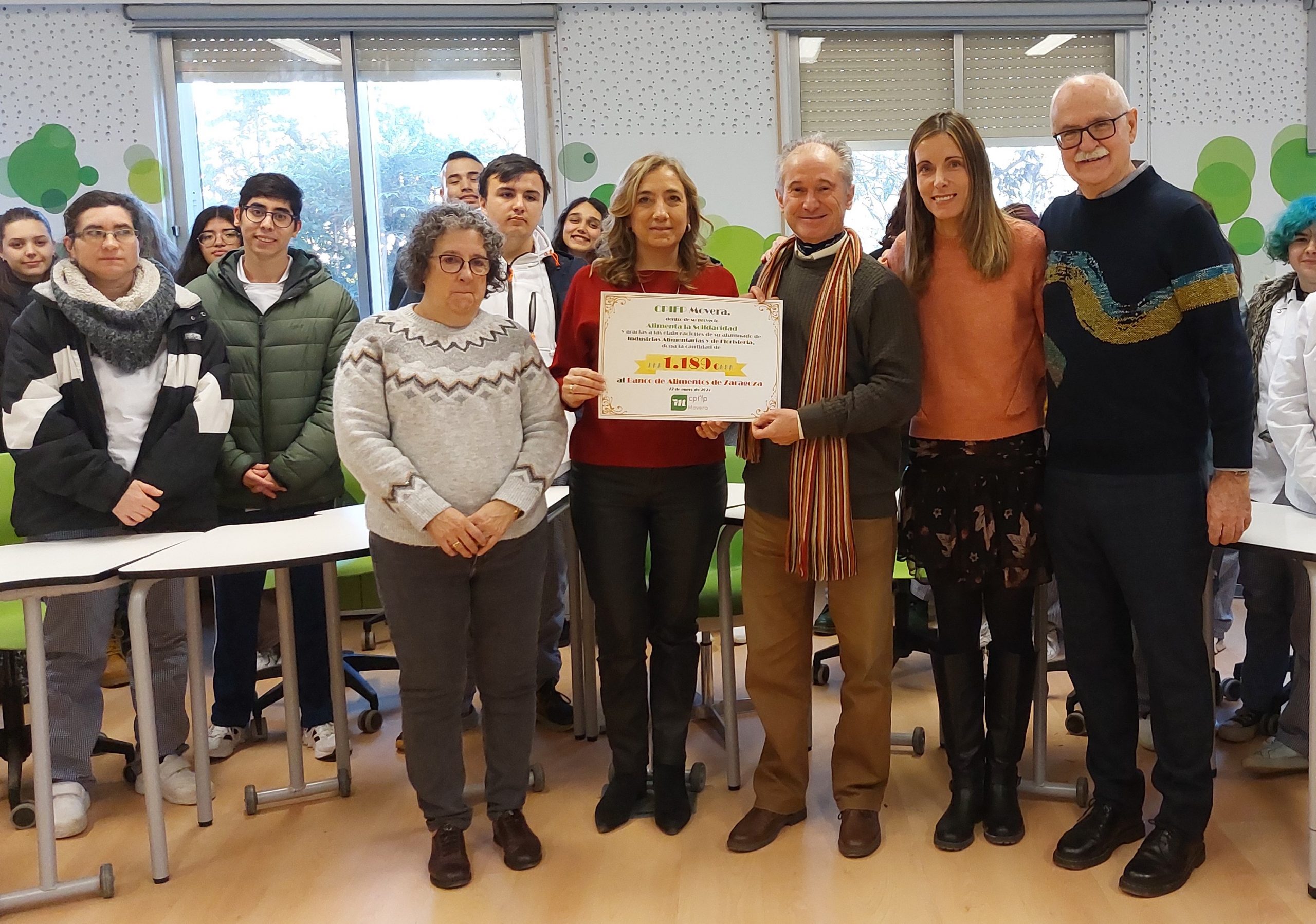 El Centro Público Integrado de Formación Profesional de Movera nos ha donado 1189 euros, que han recaudado los alumnos a través de